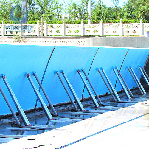 液壓壩既能達到橡膠壩能升能降的效果,又克服了橡膠壩安全性、可靠性、耐久性較差的缺點,使用壽命是橡膠壩的五倍以上,壩體以底部為軸,無中墩設計,放倒壩面后緊貼河床,排沙排漂效果好,再大的洪水都不會沖毀壩體,液壓活動壩面操作簡單方便,升降壩面速度快。